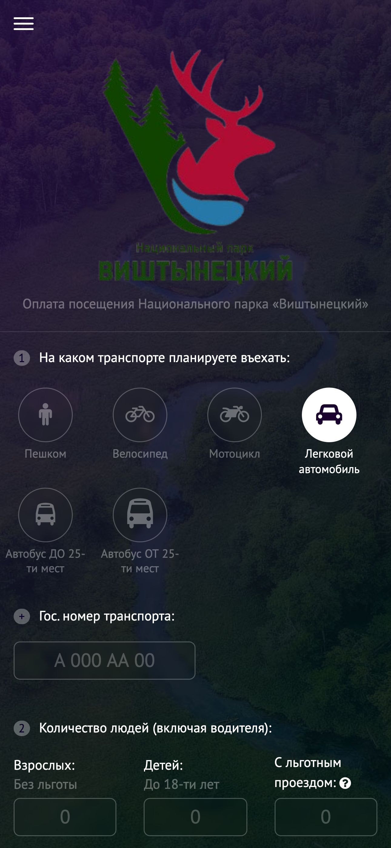 ШАГ 1: Вписать данные по машине и людям на форме покупки поездки.